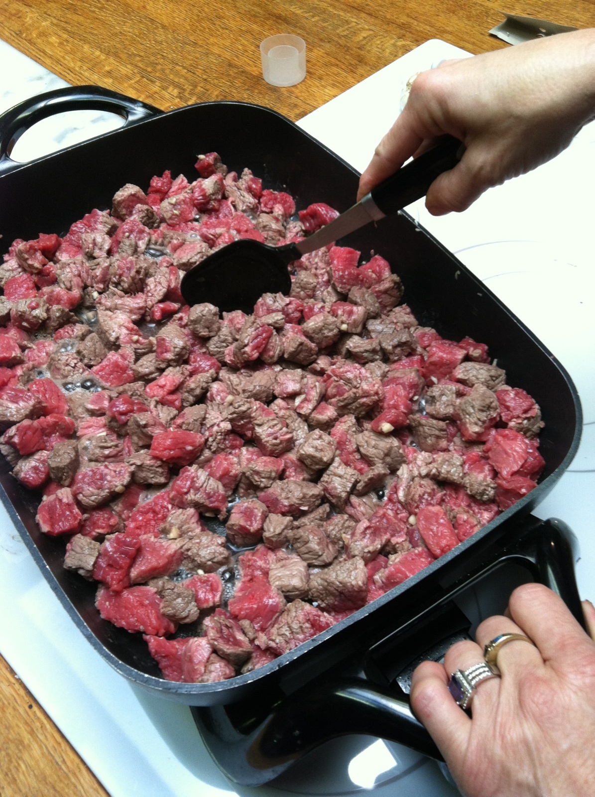 Cooking stew meat. NOTE: this is double the amount the recipe calls for.