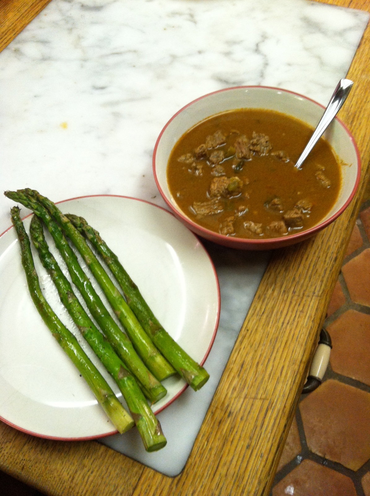 Recipe: Beef Soup, Roasted Asparagus, and Blackberries